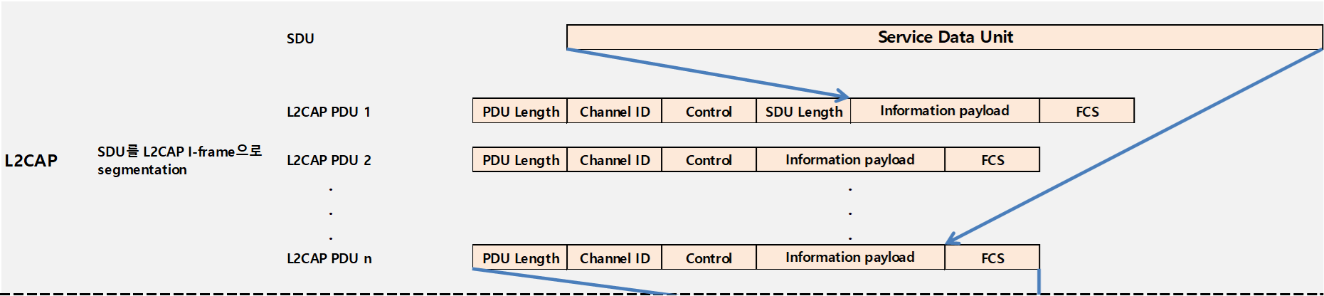 * 전체적인 L2CAP segmentation과 HCI fragmentation은 "L2CAP segmentation과 HCI fragmentation" 참고