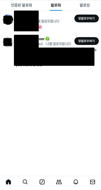아래 그림처럼, X에서 팔로워가 2명이라고 나타나서, 팔로워를 확인하였는데 아무도 없었다.