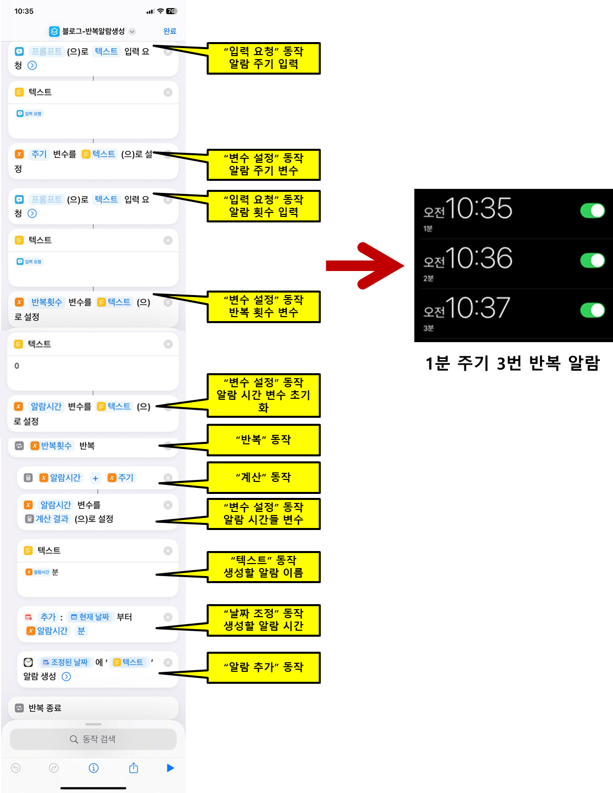 그럴 때 이 단축어를 이용하면, 일정 주기마다 알람이 울려서 매우 편하다.