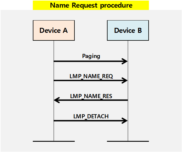 - Name Discovery의 목적은, connectable 디바이스의 Bluetooth Device Name을, initiator에게 제공하기 위해서다.