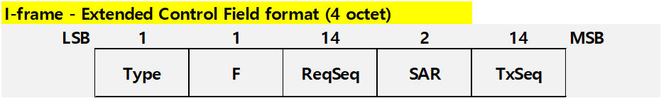 - R (Retransmission Disable Bit): 0 (Flow Control GO: 송신측 I-frame RetransmissionTimer가 enable) / 1 (Flow Control STOP: 송신측 I-frame RetransmissionTimer가 disable)