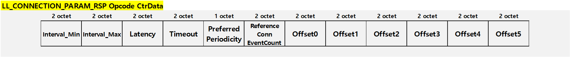 - 각 필드에 대한 설명은, "16. LL_CONNECTION_PARAM_REQ (0x0F)"과 동일