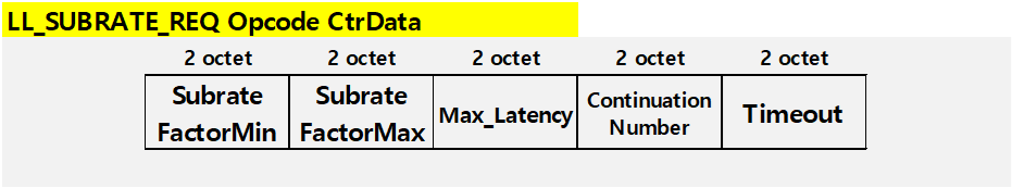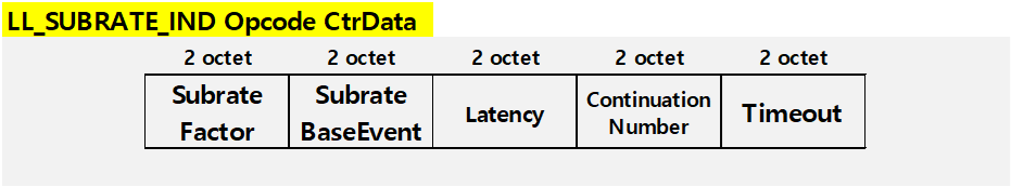- SubrateFactor: 새로운 connSubrateFactor 값 (자세한 내용은, "LE Connection event" 참고)
