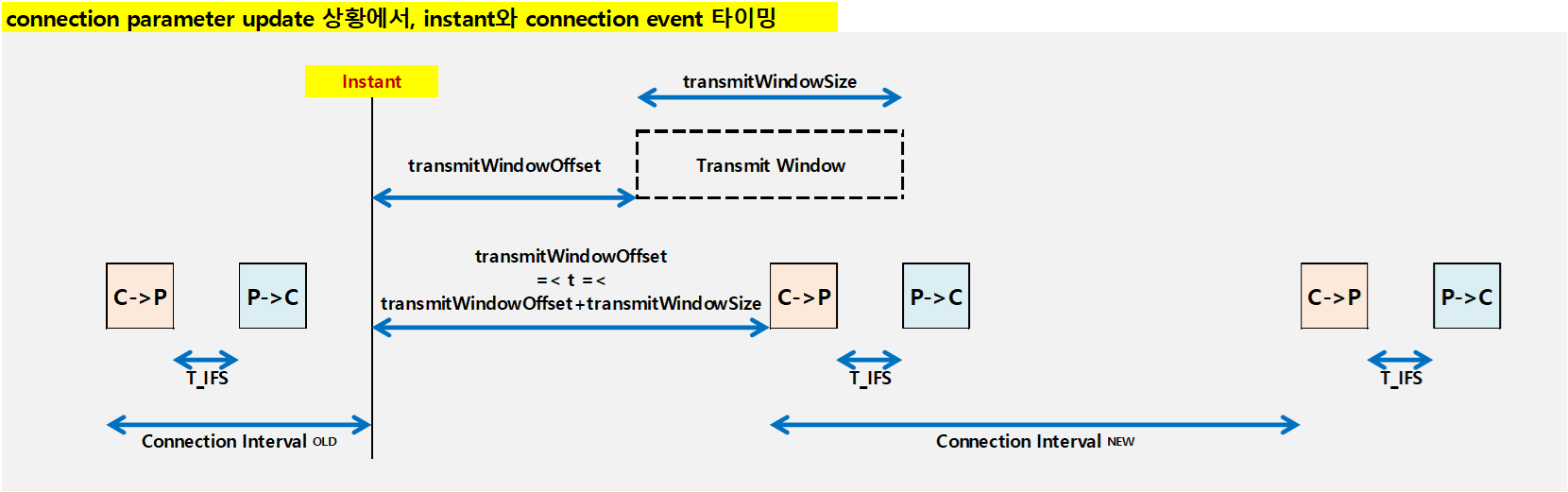 - Instant: connection 관련된 변화의 기준점 (자세한 내용은, 위의 "1. LL_CONNECTION_UPDATE_IND"를 참고)